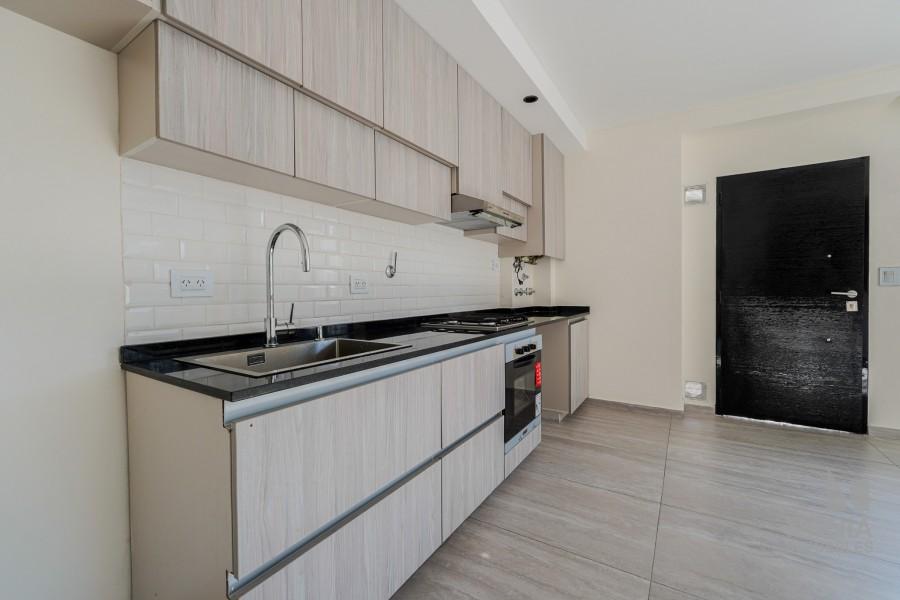 * Cocina moderna con horno y anafe Longvie, bacha {E}puyén de Mi Pileta y grifería FV.